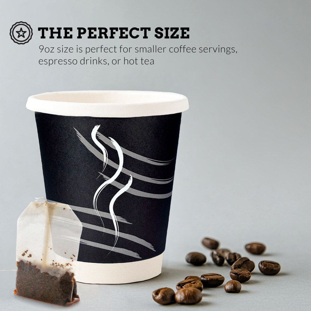 Headline: 9oz Black Double Wall Cups for Small Hot Beverages and Espresso Drinks