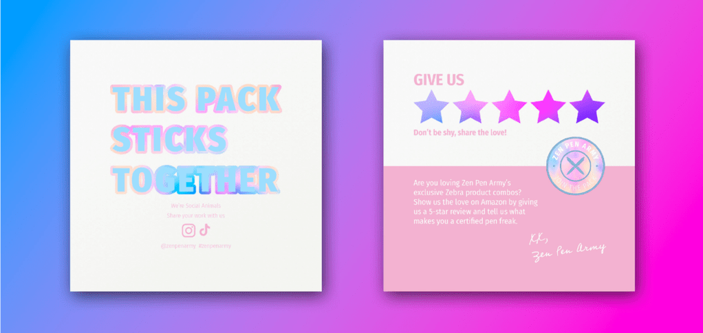 Led the creation of Zen Pen Army, a fan-focused sub-brand developed for Zebra Pen to engage a younger, Gen Z audience. We built a vibrant e-commerce site and crafted a tailored Amazon presence, bundling best-selling products into curated packs with playful names like Journaling Drip Pack and Exclusive Student Essentials Pack. The brand tone, visuals, and product strategy were all designed to feel community-driven, expressive, and accessible.